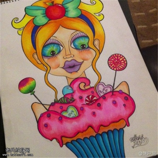 一套个性彩色邪恶的蛋糕纹身手稿图片