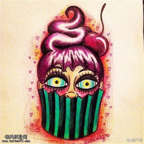 一套个性彩色邪恶的蛋糕纹身手稿图片