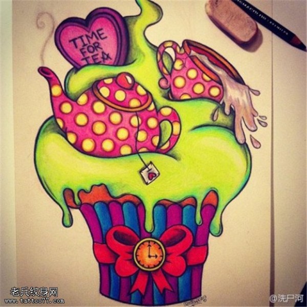 一套个性彩色邪恶的蛋糕纹身手稿图片