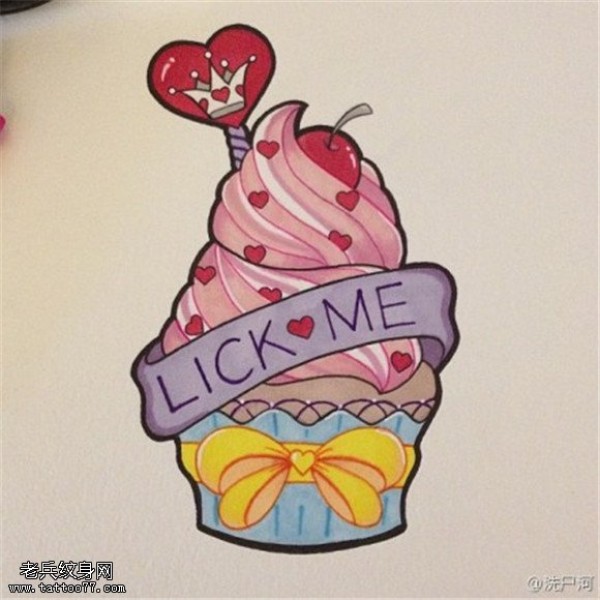 一套个性彩色邪恶的蛋糕纹身手稿图片