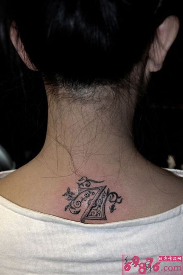 后颈部纹身小图--9张女生脖子后颈处的简约纹身图案