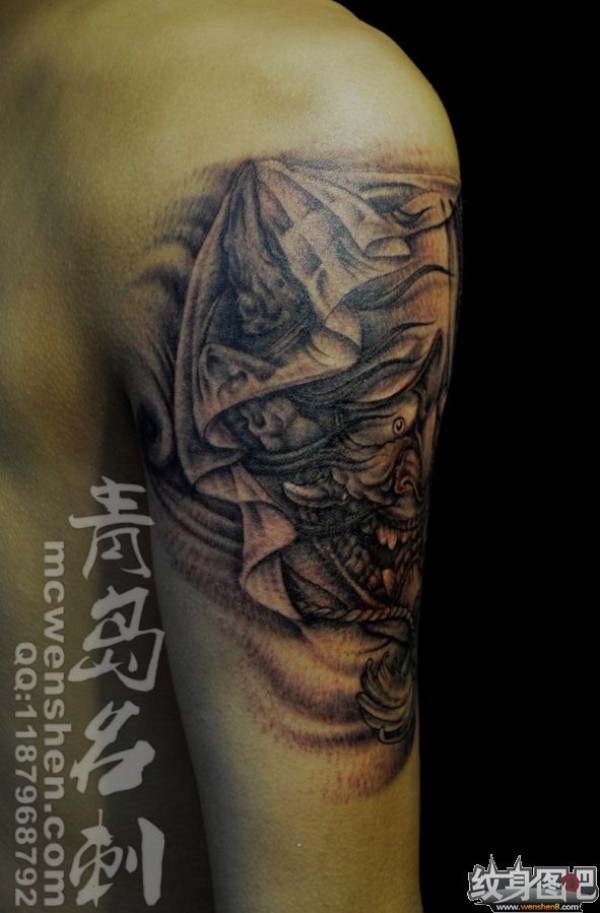 能面万媚纹身手稿_52张日式能剧面具纹身手稿图案素材欣赏