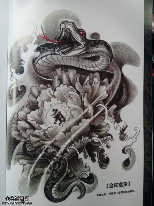 牡丹蛇纹身图案