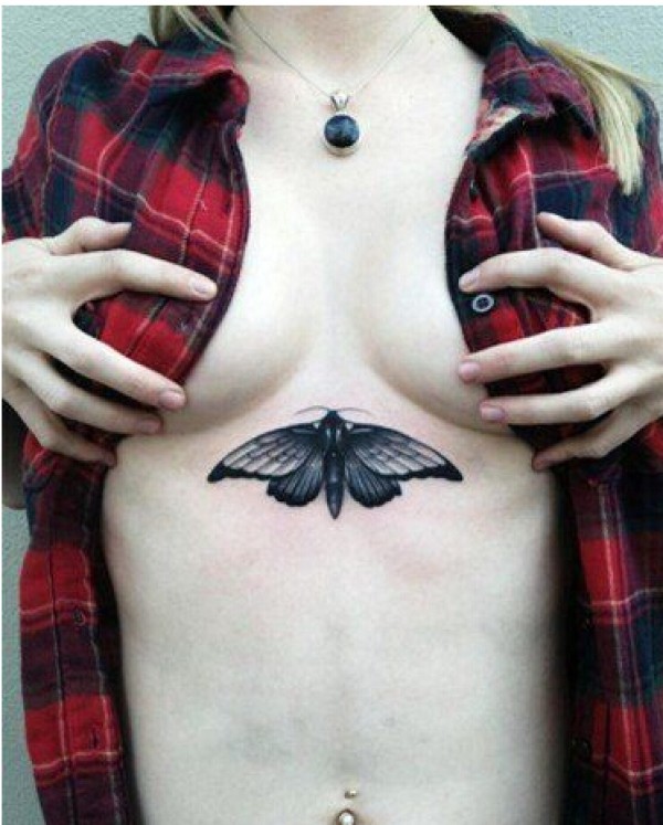 美女胸口一张个性时尚好看的蝴蝶纹身图片