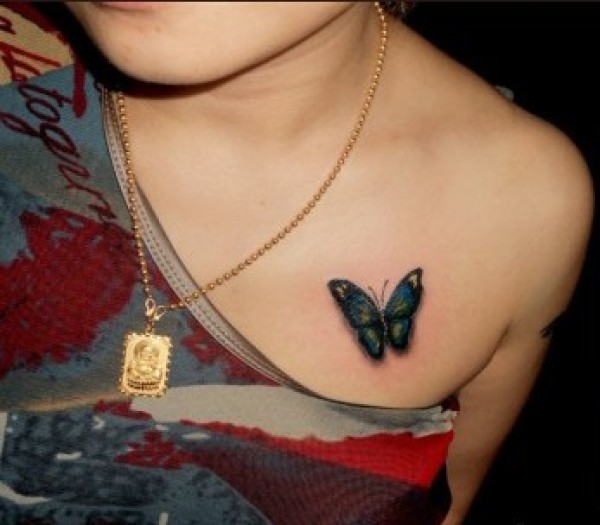 时尚美女胸前唯美好看的蝴蝶时尚纹身图片
