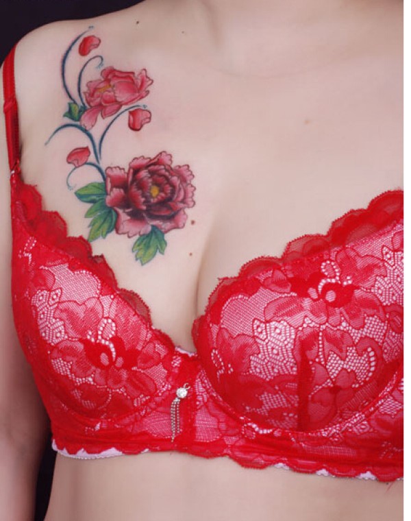 后肩唯美花藤英文图案图片_植物纹身图案大全_纹身图吧