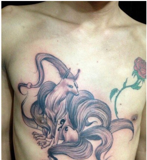 男生前胸经典时尚帅气的九尾狐纹身图图片