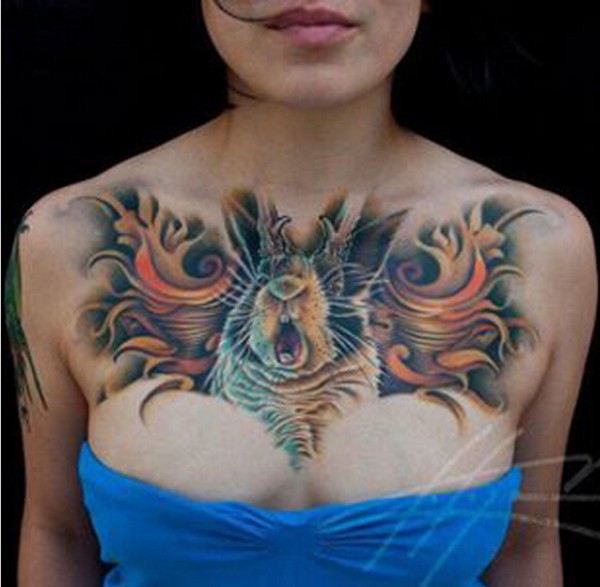 女孩胸前个性时尚好看的兔子纹身