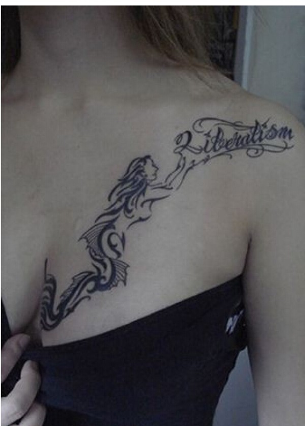 性感女孩子胸部美人鱼图腾字母纹身图图片