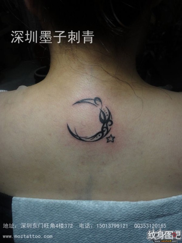 脖子后面的月亮形状图腾纹身