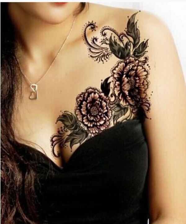 女性大花胸纹身_43张霸气漂亮的女性大花胸纹身图案作品