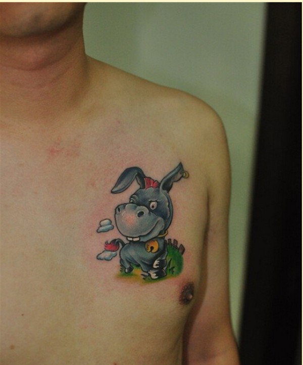 个性男士胸口可爱好看的卡通驴纹身图图片