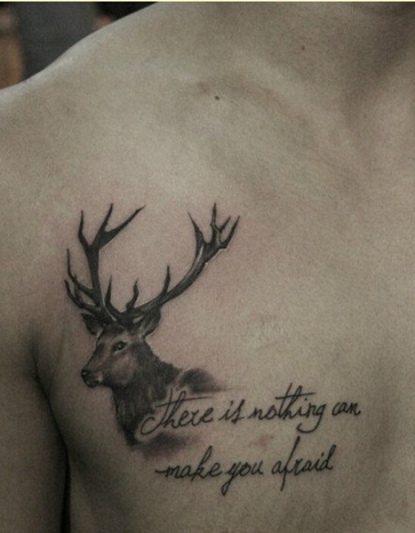 个性男士胸口时尚羚羊字母纹身图案