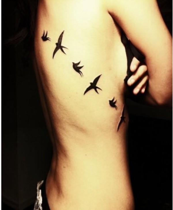 性感女生侧胸唯美好看的图腾燕子纹身图片