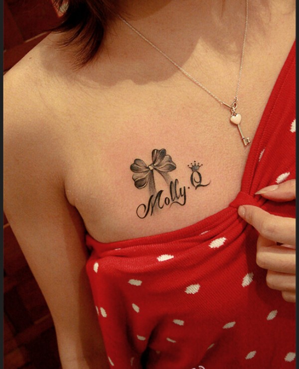 女生胸部漂亮好看的蝴蝶结字母纹身图图片