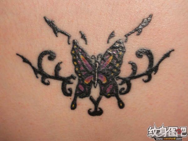 分享一款腰部时尚性感的蝶恋花纹身图案_腰部纹身图案大全_纹身图吧
