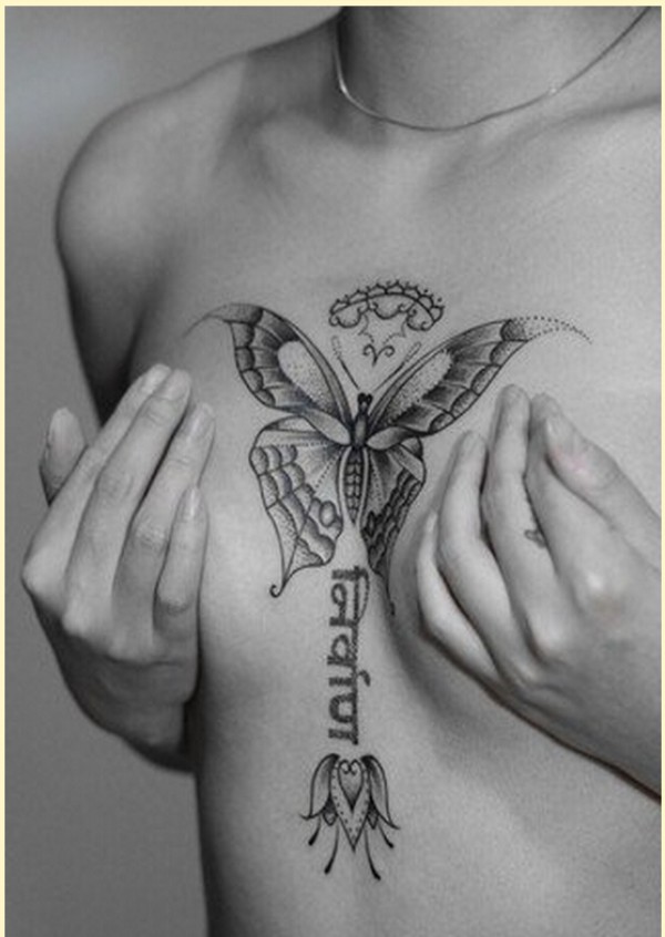 性感女生胸口漂亮好看的蝴蝶纹身图案