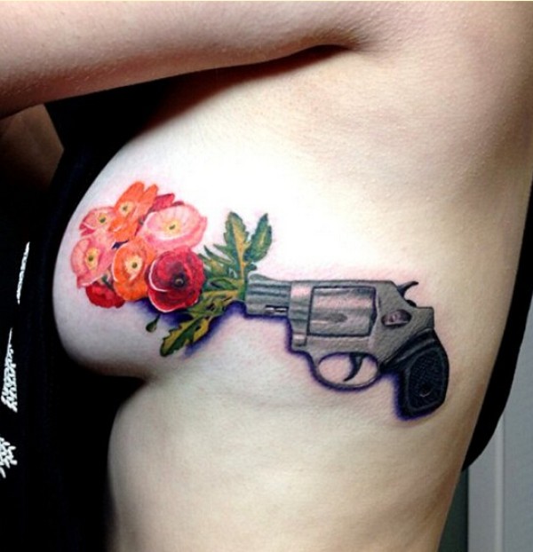 性感时尚美女胸部漂亮手枪花纹身图片图片