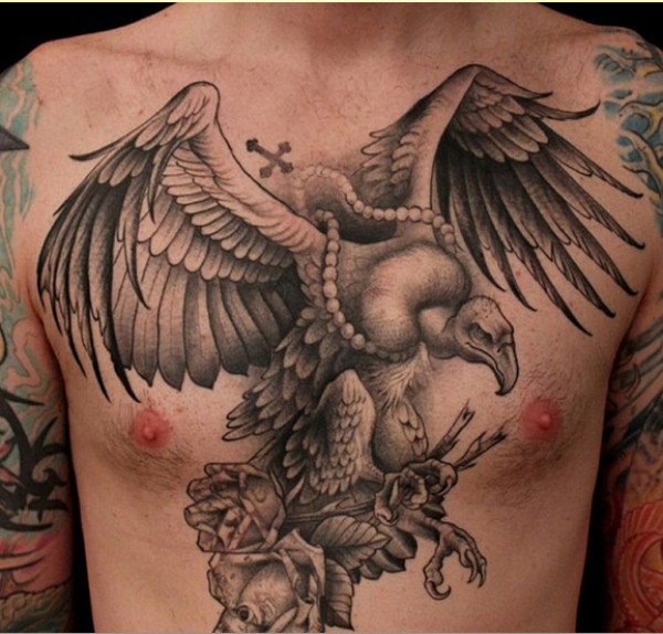 个性男士胸口时尚好看的秃鹫纹身图片图片