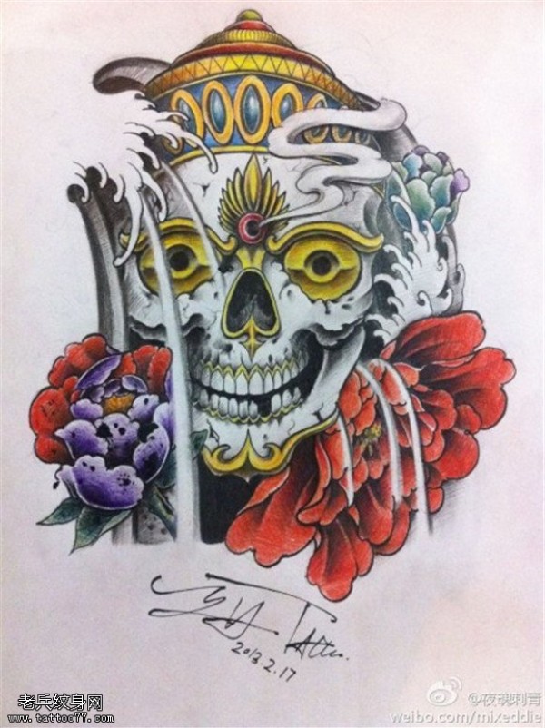 能面万媚纹身手稿_52张日式能剧面具纹身手稿图案素材欣赏