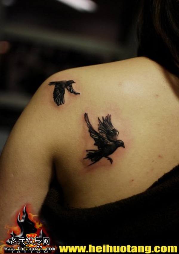 女生肩花纹身_15张女性双肩对称的肩花纹身图案作品图片