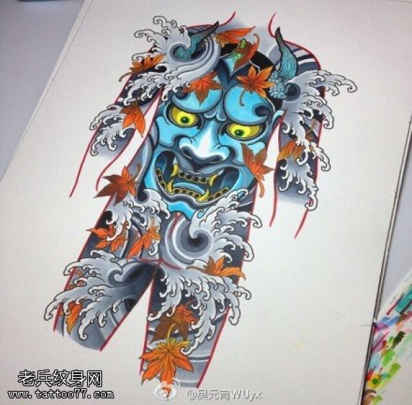 能面万媚纹身手稿_52张日式能剧面具纹身手稿图案素材欣赏