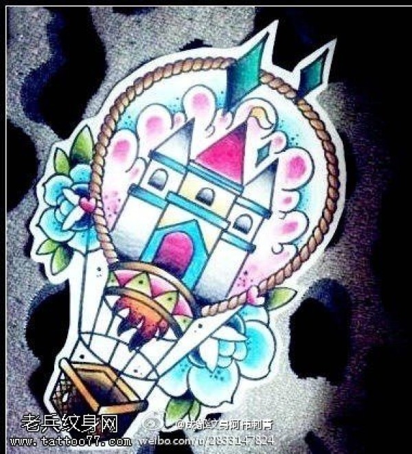 彩色玫瑰花热气球纹身图案
