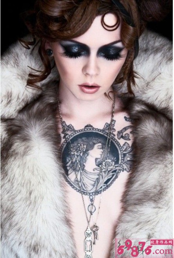 美女胸前希腊女神纹身图片