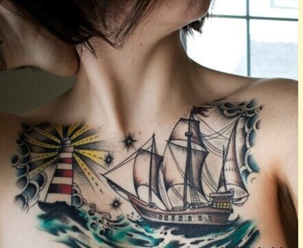 纹身图案胸部男 简洁大方的男生胸部纹身图案