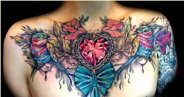 女性大花胸纹身_43张霸气漂亮的女性大花胸纹身图案作品