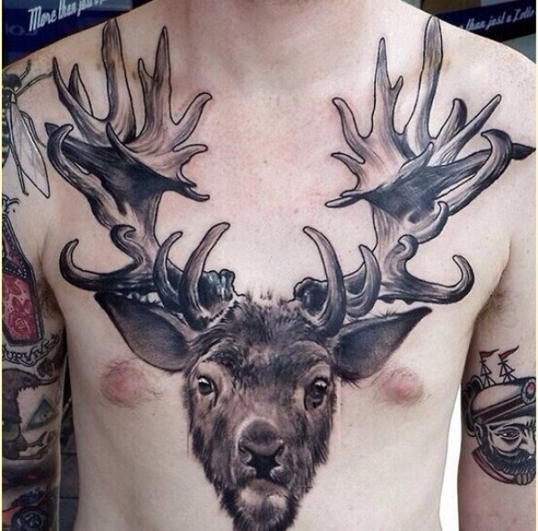 时尚胸口个性鹿纹身图案欣赏图片