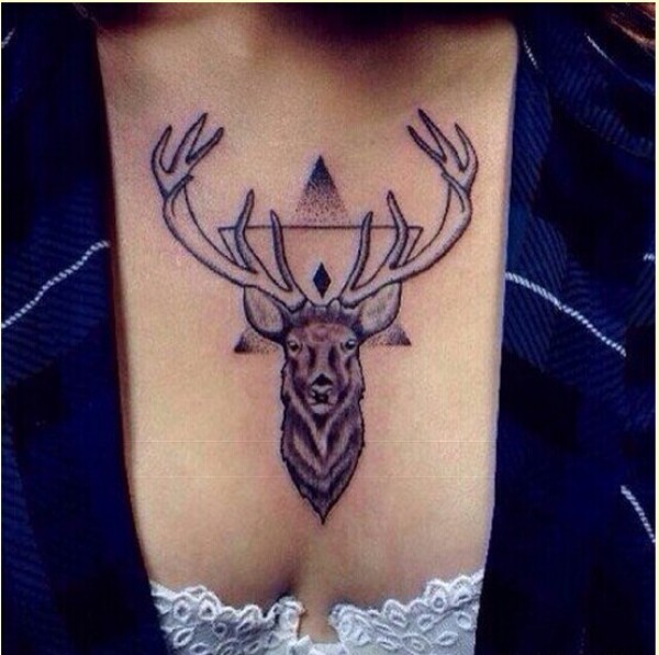 性感女生胸口羚羊纹身图案欣赏图片