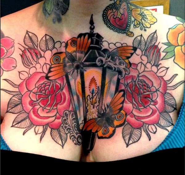 女性大花胸纹身_43张霸气漂亮的女性大花胸纹身图案作品