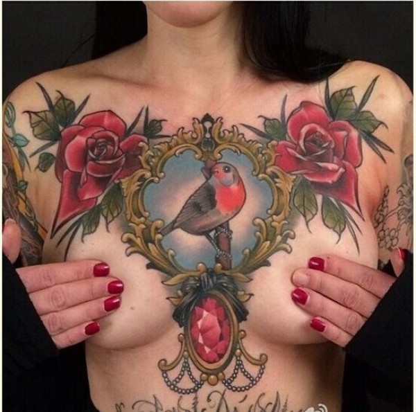 女性大花胸纹身_43张霸气漂亮的女性大花胸纹身图案作品