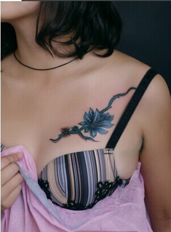 漂亮女生胸部漂亮的花卉藤蔓纹身图图片