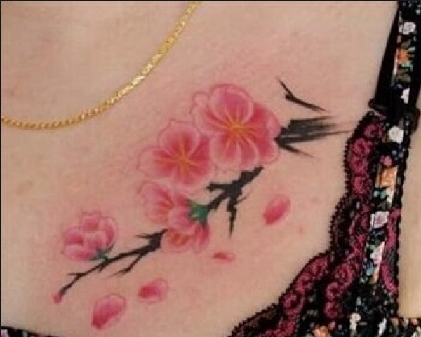 女生胸部唯美性感的桃花纹身