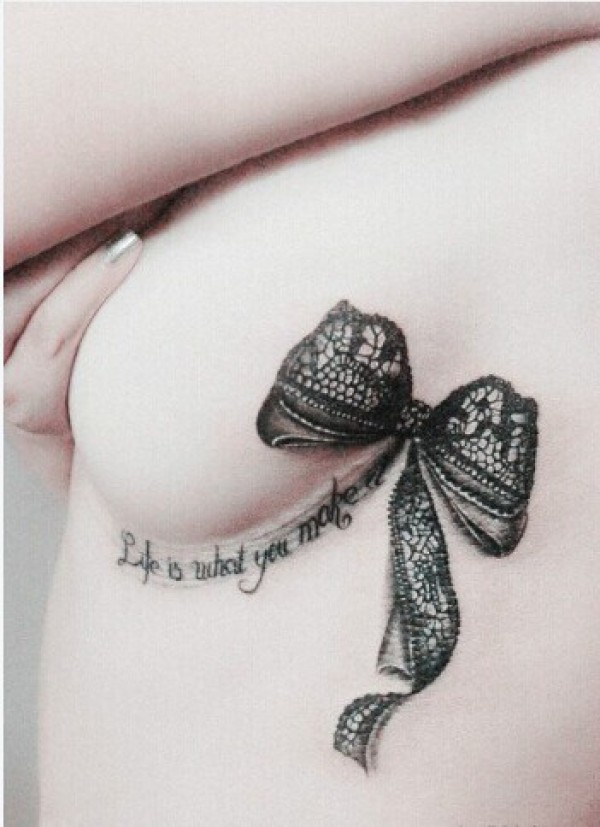 性感美女胸部唯美英文蝴蝶结纹身图图片