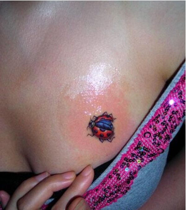 性感女生胸部漂亮感性的小昆虫纹身图图片