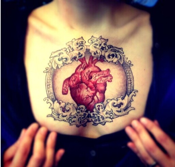 女生胸部另类经典的心脏纹身图图片