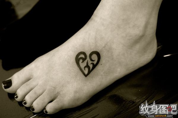 脚背黑色心形图腾纹身