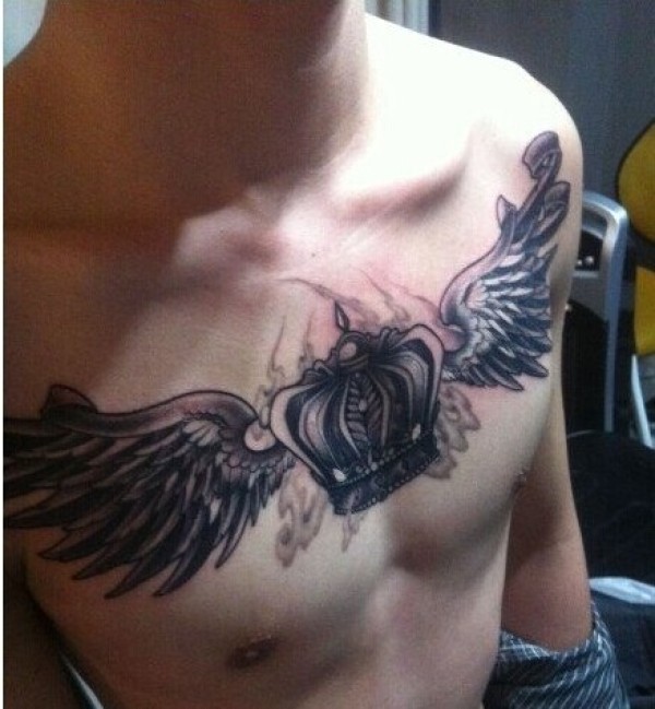 男生前胸超酷时尚的皇冠翅膀纹身图图片