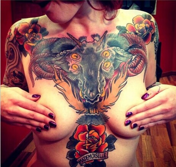 女性大花胸纹身_43张霸气漂亮的女性大花胸纹身图案作品