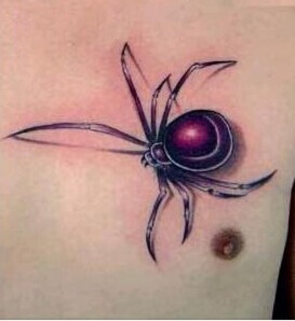 3D立体 男士动感胸部蜘蛛纹身图片