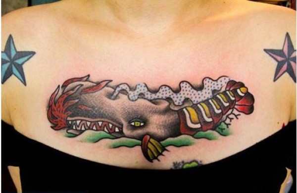 oldschool风格的拼接花臂纹身作品欣赏