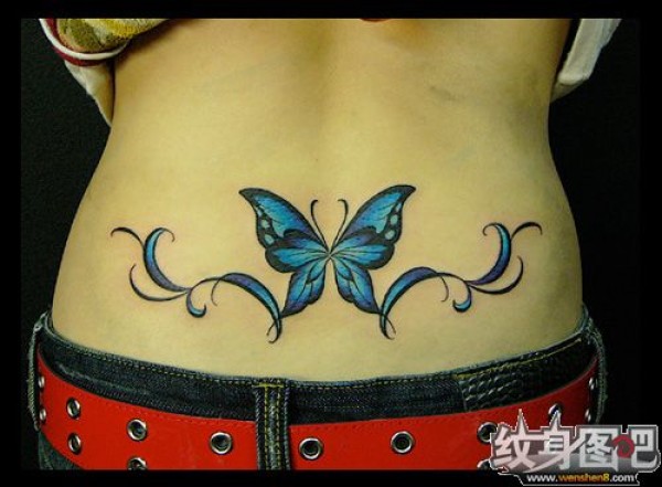 分享一款腰部时尚性感的蝶恋花纹身图案_腰部纹身图案大全_纹身图吧
