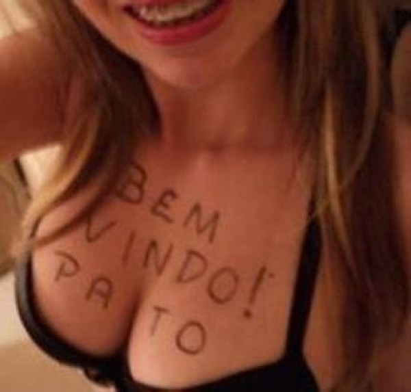 欧美美女瓦妮莎展示胸部文字纹身图案