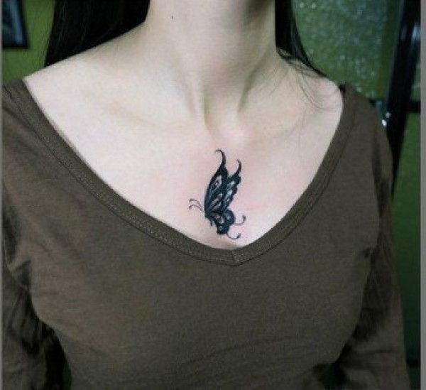 女孩子胸前唯美好看的图腾蝴蝶纹身图图片