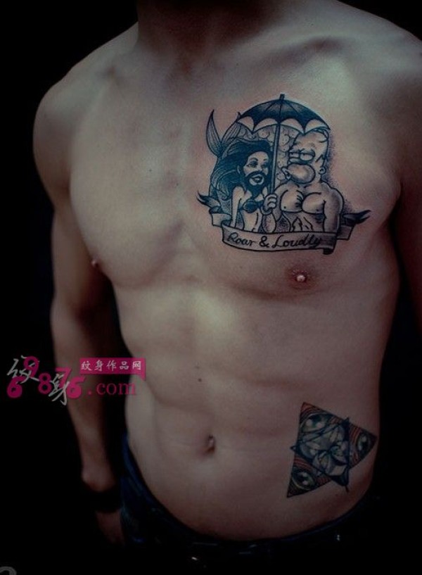男人胸口另类肖像纹身图片