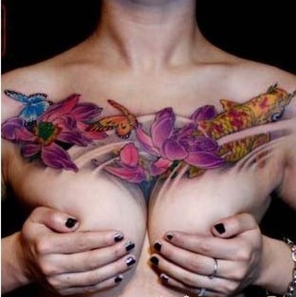 花胸纹身图案-9张好看的花胸纹身图片