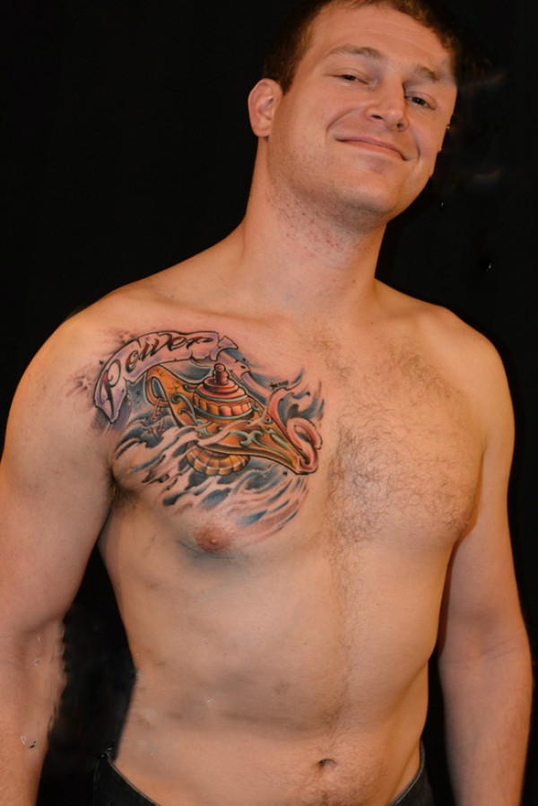 欧美帅哥胸口阿拉丁神灯纹身图片